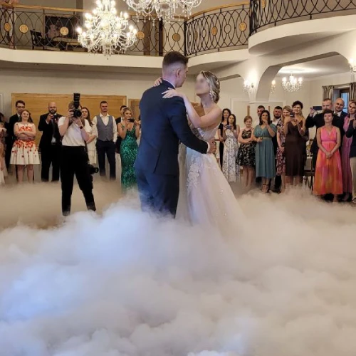 Pierwszy taniec w chmurach – dla chętnych par oferuję wytwornicę ciężkiego dymu na suchy lód, która tworzy wyjątkowy, romantyczny klimat podczas pierwszego tańca. Efekt ten można również wykorzystać w momencie podania tortu, nadając tej chwili jeszcze bardziej uroczystego charakteru.